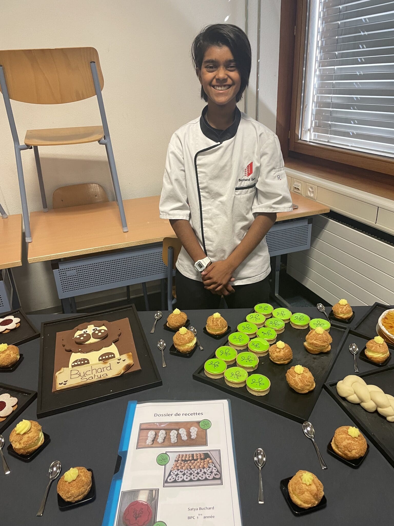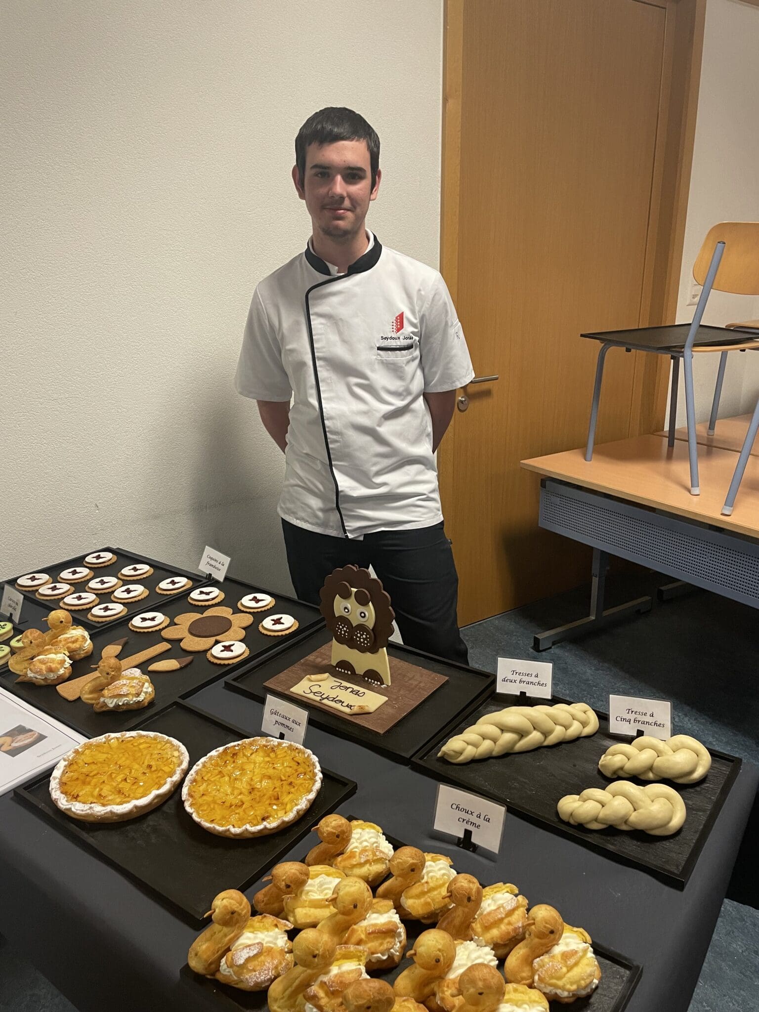 Début juin, les quatorze apprentis boulangers-pâtissiers-confiseurs francophones de 1re année en école des métiers à Sion ont passé un examen pratique, afin de se familiariser avec ce qui les attend à la fin de leur formation. En plus de la présentation de leur dossier, ils ont bénéficié de trois heures pour confectionner des spécialités et réaliser la présentation de leur table. Patrons et parents étaient invités pour l’occasion.