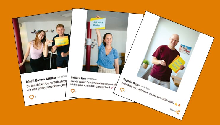Im Vorfeld der Berufsmeisterschaften können Fans, Freunde und Familie die Teilnehmenden mit einer persönlichen Fan-Botschaft unterstützen. Auf der eigens von SwissSkills eingerichteten Social-Wall kann eine eigene Grussbotschaft an die Teilnehmenden gesendet werden. Diese Glückwünsche sorgen nicht nur am Anlass für eine Motivationsspritze, die besten Wünsche und Sprüche flimmern im Vorfeld schweizweit über digitale Werbebildschirme und erscheinen in den sozialen Medien.